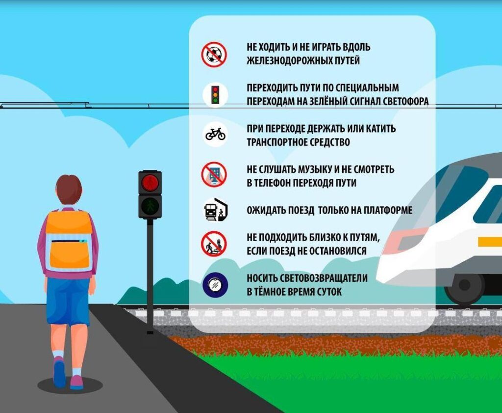 — двигаться вдоль железнодорожного пути ближе 3-х метров от крайнего рельса;