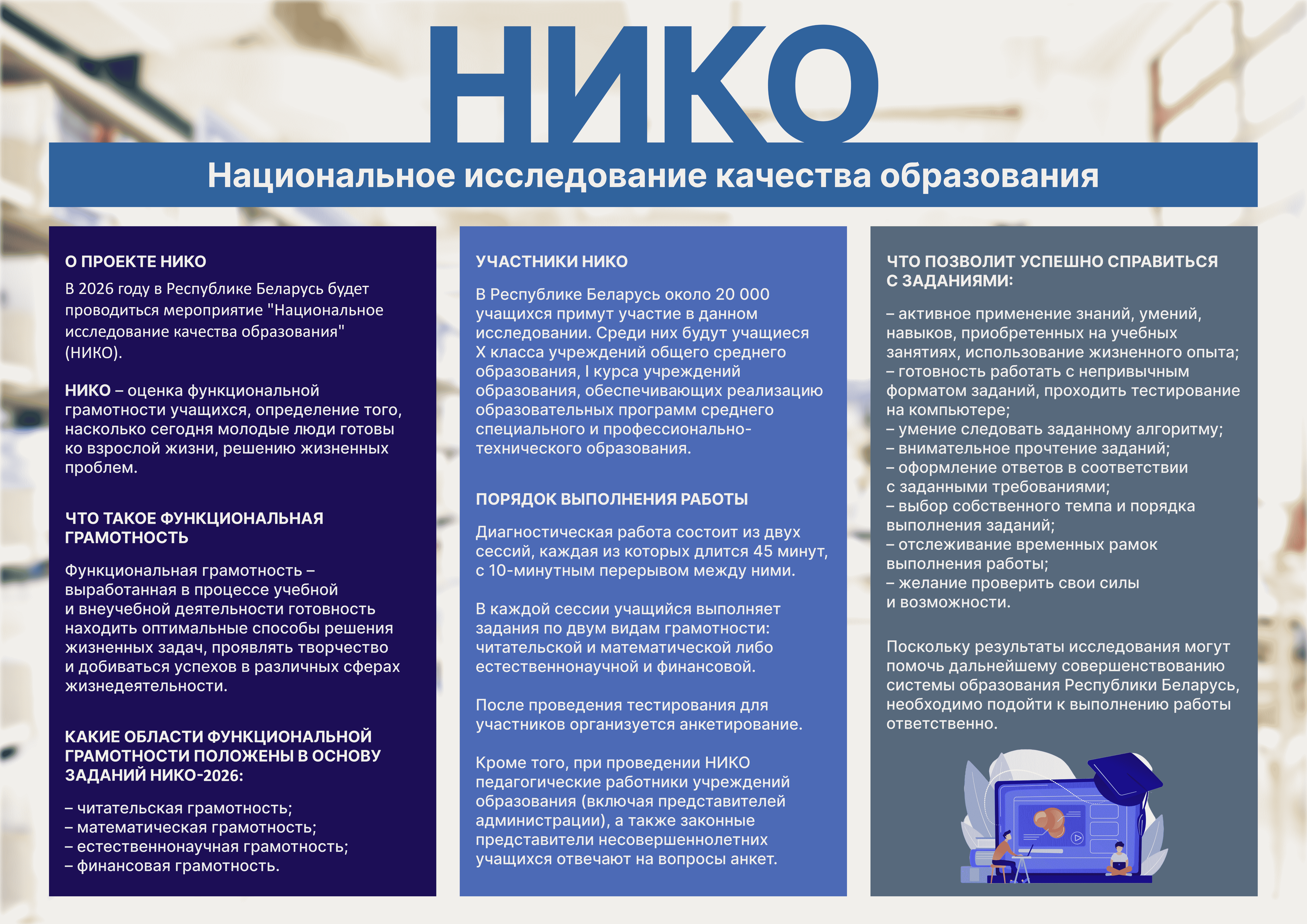 - Национальное исследование качества образования (НИКО) (ссылка на сайт adu.by)