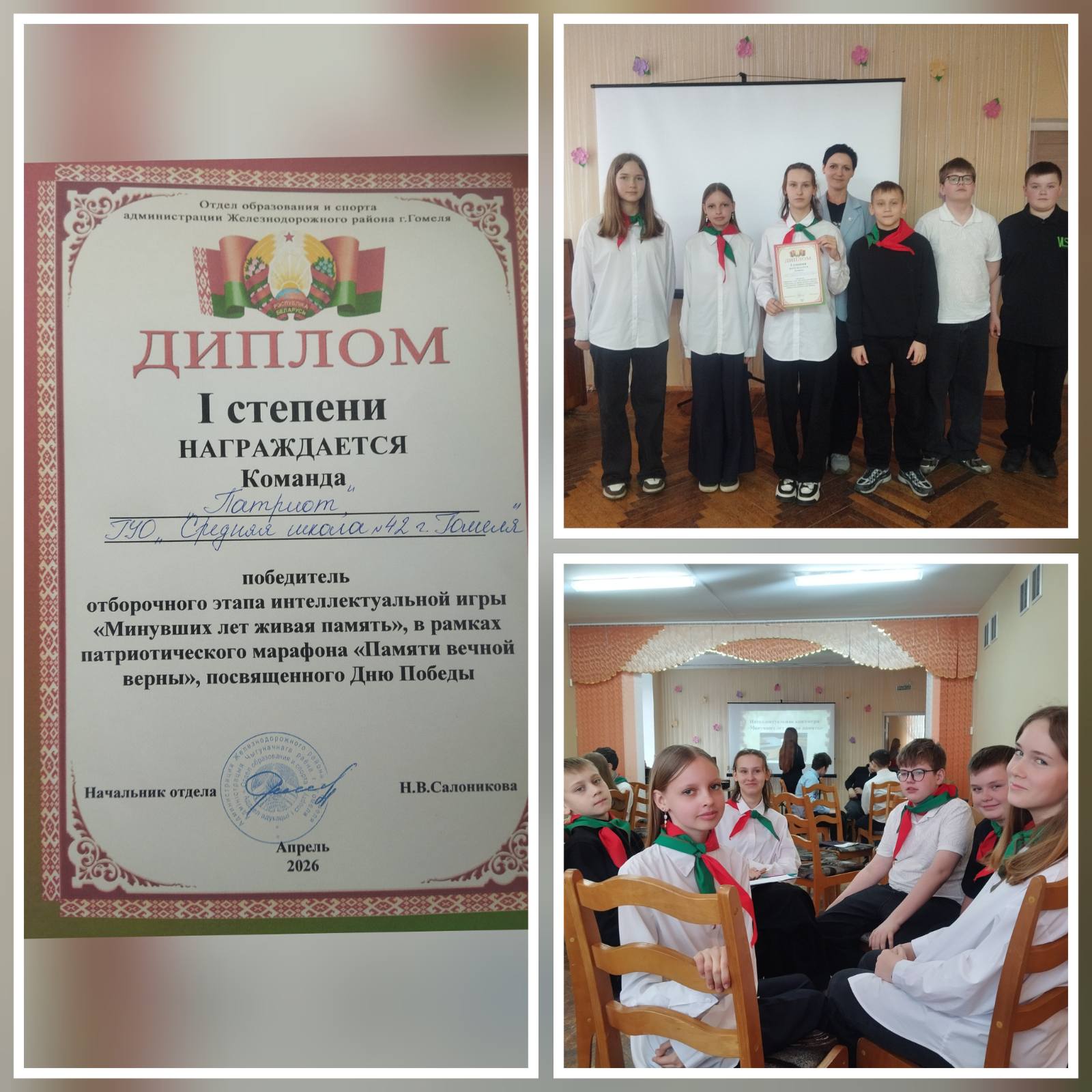 Команда «Патриот» ГУО «Средняя школа №42 г. Гомеля» успешно выступила на отборочном этапе интеллектуальной игры «Минувших лет живая память».